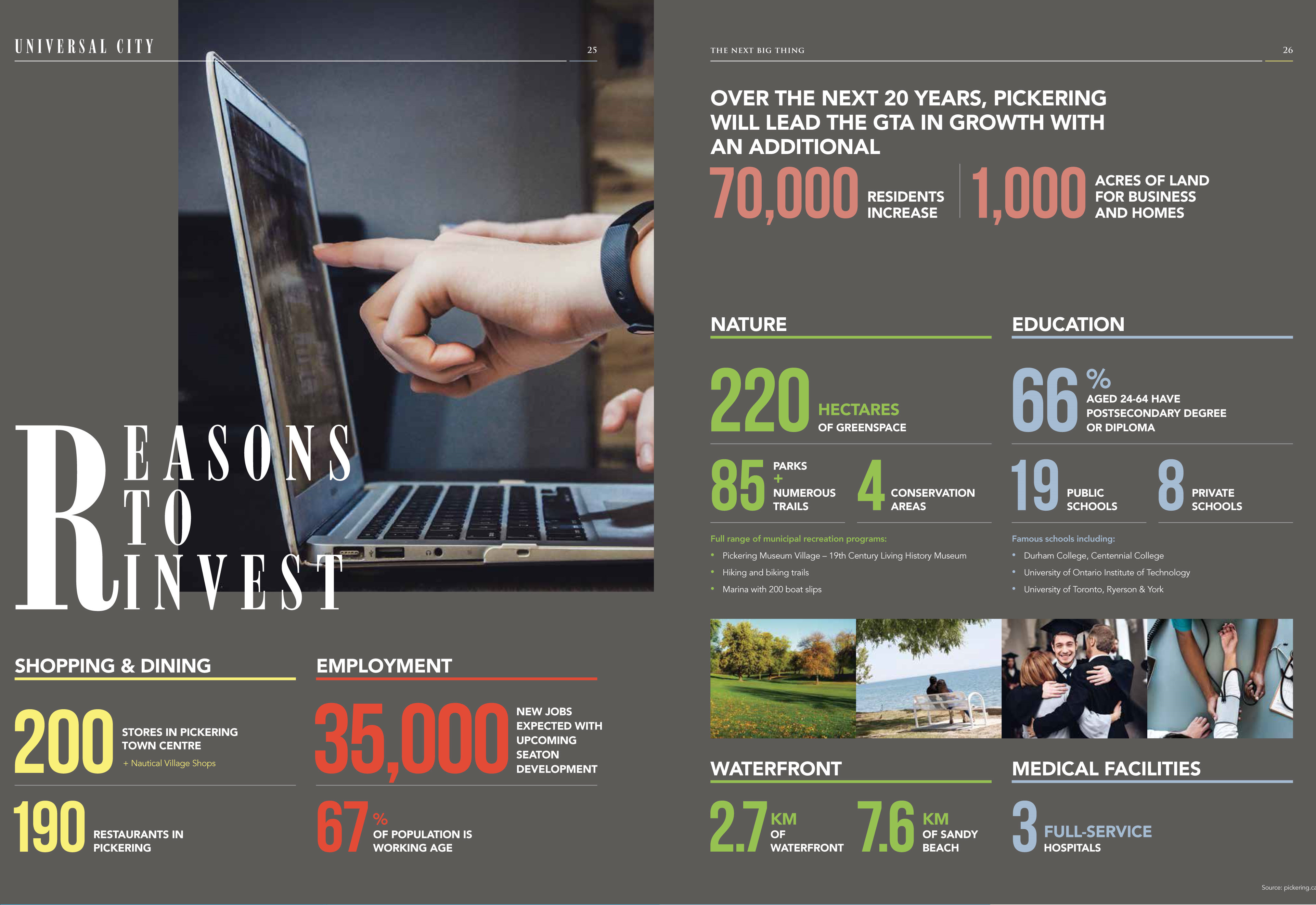 Downtown Pickering, located just east of Scarborough, is going to be a major hub for jobs and population growth as the city sees an increase in infrastructure development. The town of Pickering is considered to be one of the designated growth areas in the Province�s Places to Grow Act. The plan designates certain locations for growth via strategic planning. Pickering is preparing to be the next hot spot to live in GTA East.
